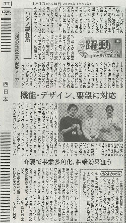 この度、ハタノ製作所が日刊工業新聞社に掲載されました。 ハタノ製作所の歴史や、新ブランド「ケアシル」のことを取り上げていただきました。 以下より内容がご覧いただけます。 是非ご覧ください。 ※以下画像をクリックでPDFが開きます。